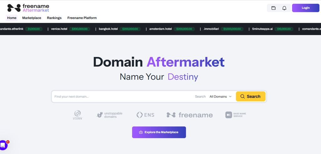 Web3 is ushering in a new era of the Internet — decentralized, open, and owned by its users. With Freename Aftermarket, you can now buy and sell TLDs (Top-Level Domains) and SLDs (Second-Level Domains) directly on the blockchain.
